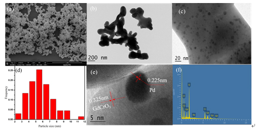 图1. 光催化材料Pd/GdCrO3扫描电镜图与透射电镜图
