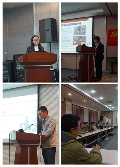 支部党员徐苏倩分享了作为一名“党员服务岗”实验室安全巡查员的工作心得,她以普通学生党员的视角,回顾了近年各高校发生的实验室安全事故,阐述了党员服务岗对于实验室日常安全维护的重要性,她谈到,在服务师生的过程中,每一位党员都从身边小事做起,发扬党员的先锋模范作用,使每个支部真正成为一个战斗堡垒。
